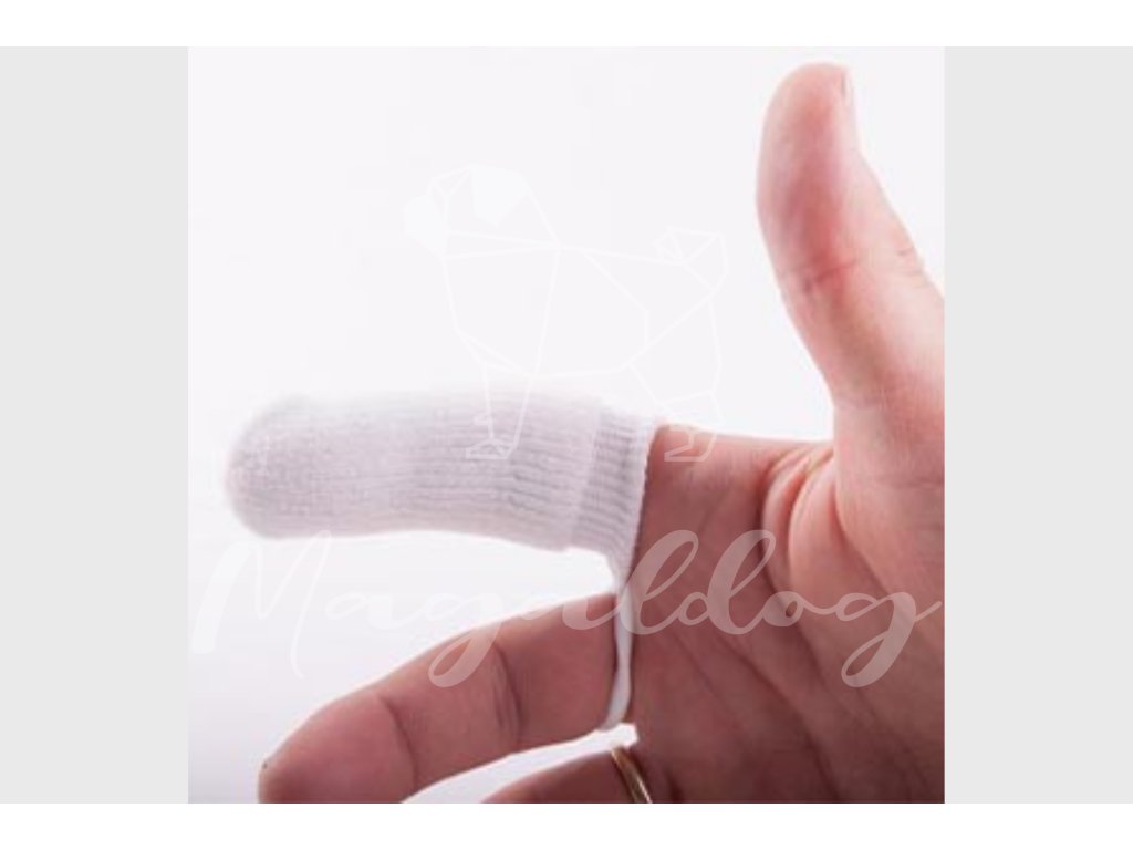 - húzd a fogtisztító kesztyűt a mutató ujjadra, a hurkot pedig a középső ujjadra,